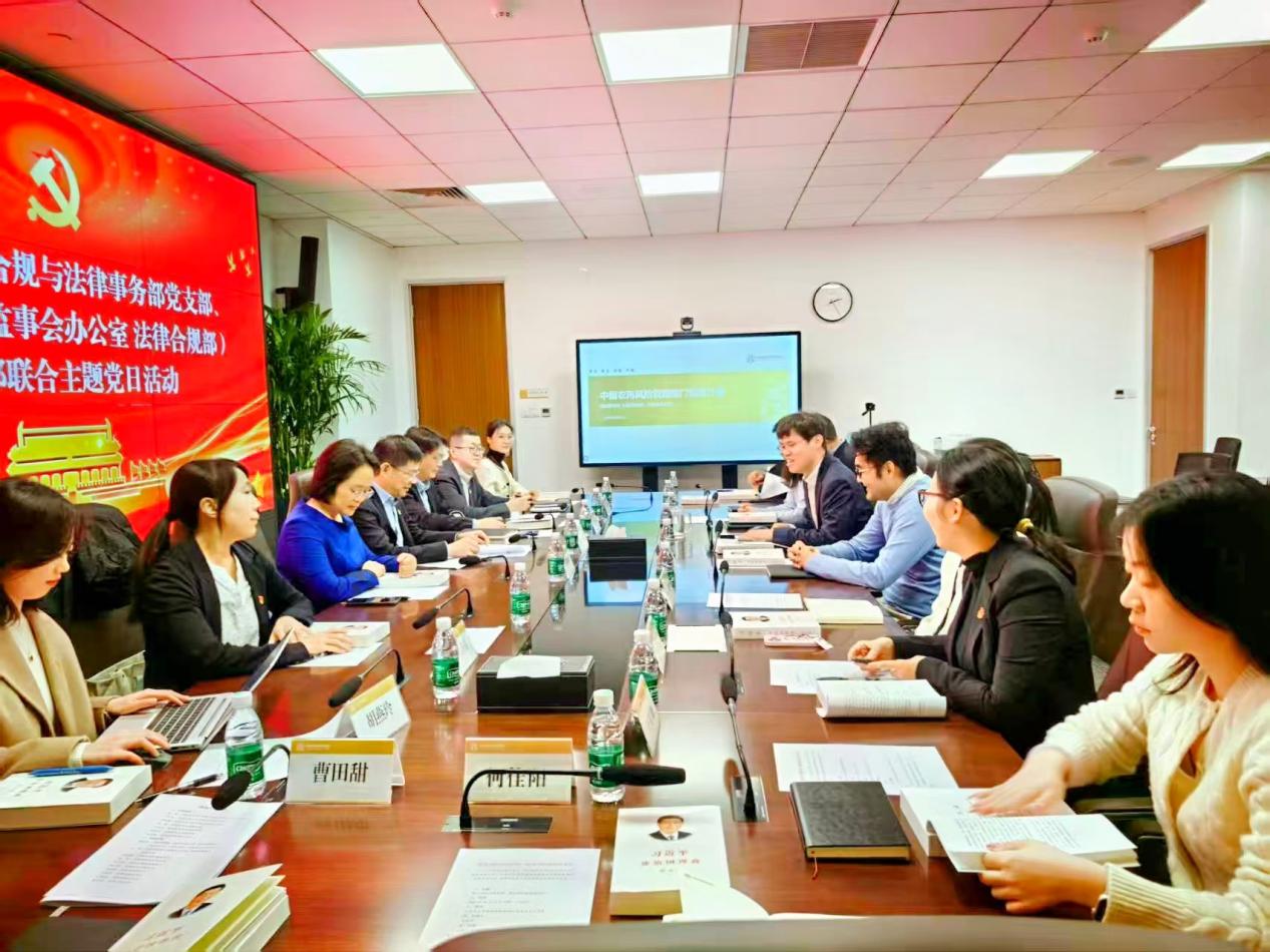 为巩固深入贯彻中央八项规定精神学习教育成果,增进中投系统内同业公司之间的交流合作,促进党建与业务深度融合,10月21日,中国农再风险管理部党支部联合中国再保内控合规与法律事务部党支部开展了“强化风险合规管理,服务公司高质量发展”主题党日活动。